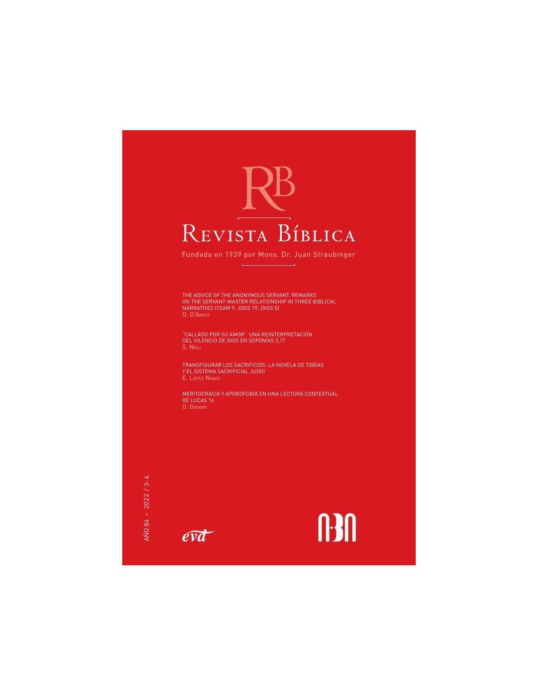 La Revista Bíblica fue fundada en 1939 por Mons. Dr. Juan Straubinger como subsidio “para el entendimiento de la Sagrada Escritura”. Hoy es propiedad de la Asociación Bíblica Argentina y public