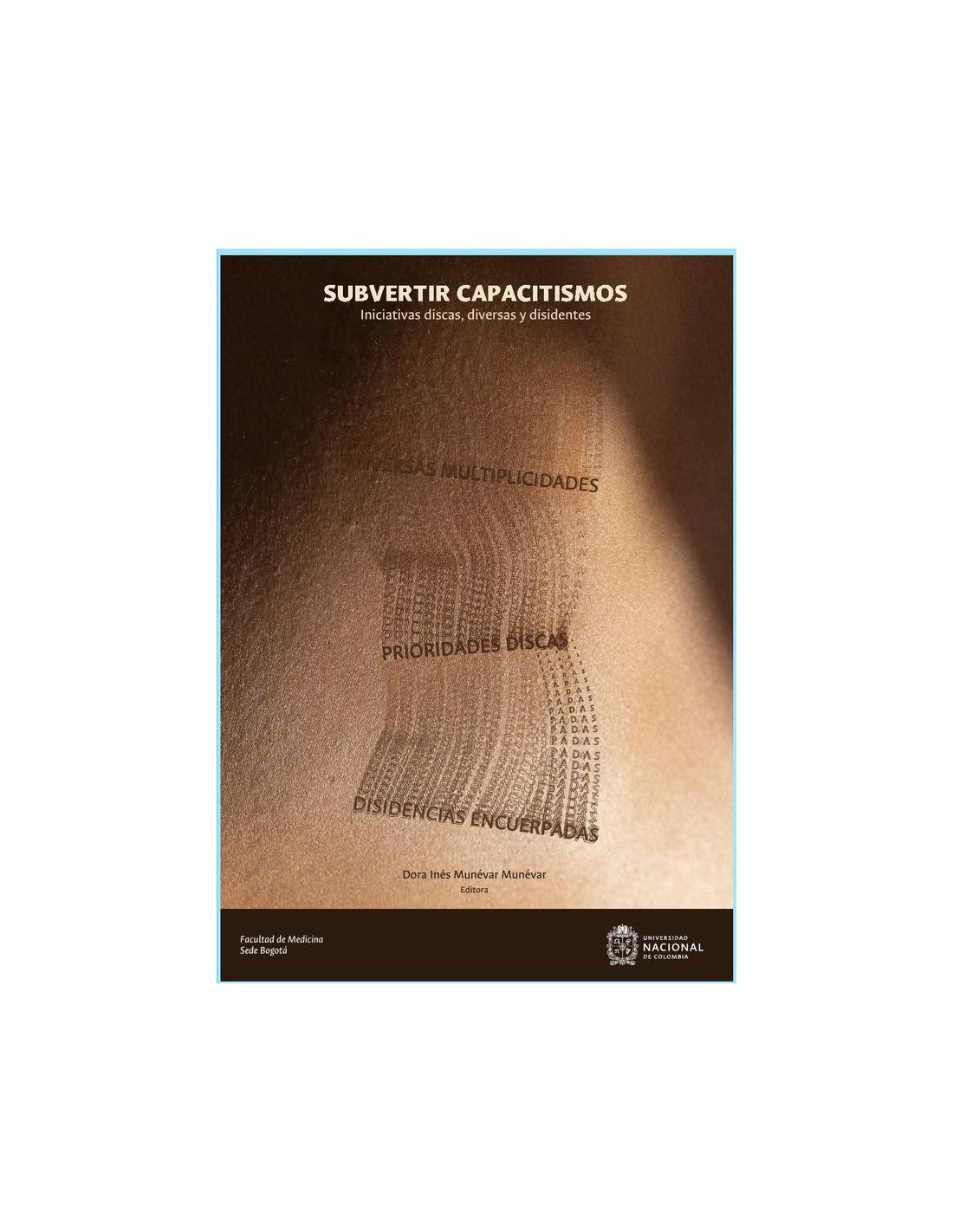 ¿Por qué subvertir los capacitismos? Porque así lo desean quienes viven sus efectos en la vida cotidiana. Con iniciativas discas, diversas y disidentes, cada vez con mayor frecuencia, se escuchan voces de resistencias y se incrementan las presencias de quienes denuncian la manera como se ha construido la normalidad, la capacidad, la perfectibilidad, la sanidad y la heterosexualidad obligatorias. Sus denuncias no solo dan cuenta del carácter social y cambiante de los cuerpos que siguen siendo considerados naturales, estables y deseables, sino que también han configurado los contenidos reflexivos expuestos en las páginas de este libro, que comienza con una presentación multivocal para revelar el sentido subversor de sus alcances. El libro está estructurado en tres partes organizadas en relación con las múltiples diversidades, las prioridades discas y las disidencias encuerpadas; a la vez, dispone de 12 capítulos que puentean unas experiencias colectivas mediadas por la conversación, la acción multivocal, la apuesta escriviviente y el envite didacto-biográfico en torno a las afectaciones y las huellas que las políticas públicas, las actuaciones programáticas y la cotidianidad, con sus vivencias comunes, han tenido sobre personas, grupos y comunidades discas, diversas y disidentes. Con alta convicción colectiva, tal como ha sido planteada por las autoras y los y les autores de la presentación y los capítulos, los debates constituyen cimientos inaplazables para repensar las políticas públicas desde la fragilidad de la vida y con la irrupción de las vidas en resistencia para interpelar a los capacitismos imperantes en la sociedad.