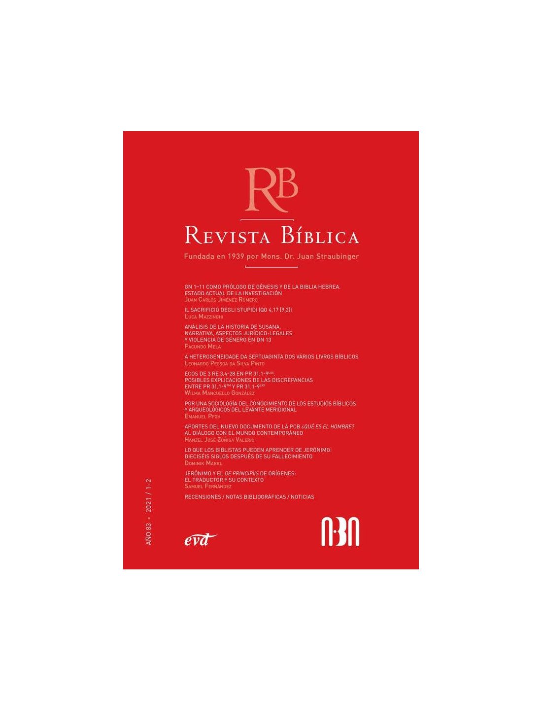 La Revista Bíblica fue fundada en 1939 por Mons. Dr. Juan Straubinger como subsidio “para el entendimiento de la Sagrada Escritura”. Hoy es propiedad de la Asociación Bíblica Argentina y public