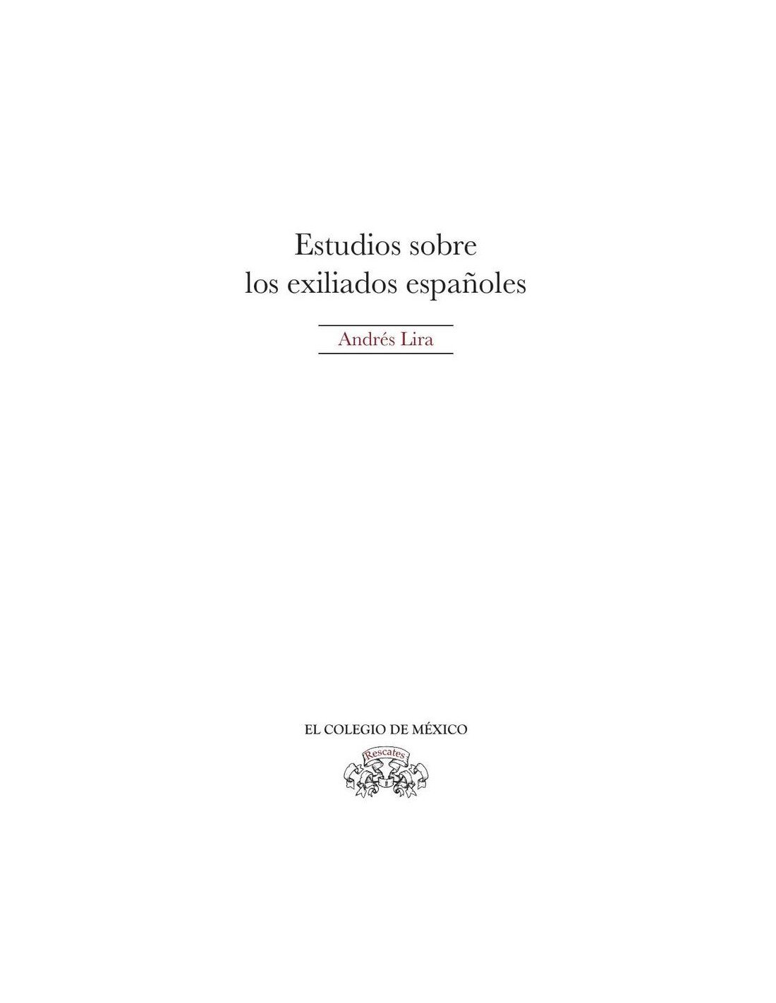 Esta obra reúne textos escritos por Andrés Lira sobre el exilio español y los maestros de ese exilio, como: José Medina Echavarría, José Miranda, Ramón Iglesia, Juan Antonio Ortega y Medina, Eu
