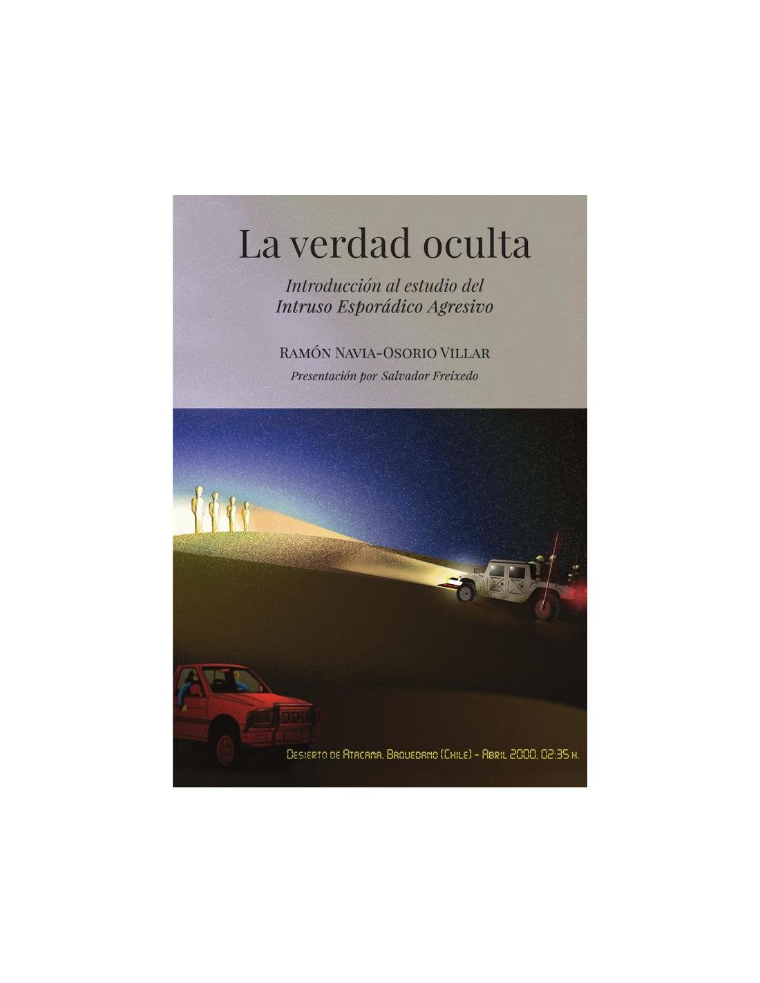 Cuando hace años Ramón Navia-Osorio se planteó la posibilidad de un estudio sobre el Intruso Esporádico Agresivo (I.E.A.), no lo consideró serio, creyendo que podía obedecer a una leyenda mal interpretada.Dedicado a la investigación directa de los no identificados, su introducción en el estudio del I.E.A. era menospreciada. No obstante, recordó que en sus primeros tiempos de indagación, hace casi cuarenta años, se pensaba igual sobre los ovnis. Comenzó su singladura en la barrera pirenaica y comprendiendo el alcance del problema se dirigió al desierto de Atacama, en Chile, y después a las zonas desérticas del este de Egipto.Las investigaciones expuestas son fehacientes y proporcionan los datos necesarios para aquellas mentes inquietas que deseen comprobarlo. El problema que ronda no es achacable a un animal común, su intelecto está con frecuencia por encima de las facultades humanas y en ocasiones parece gobernado.Aquello que en un principio parecía un mito, hoy es una cruda realidad.