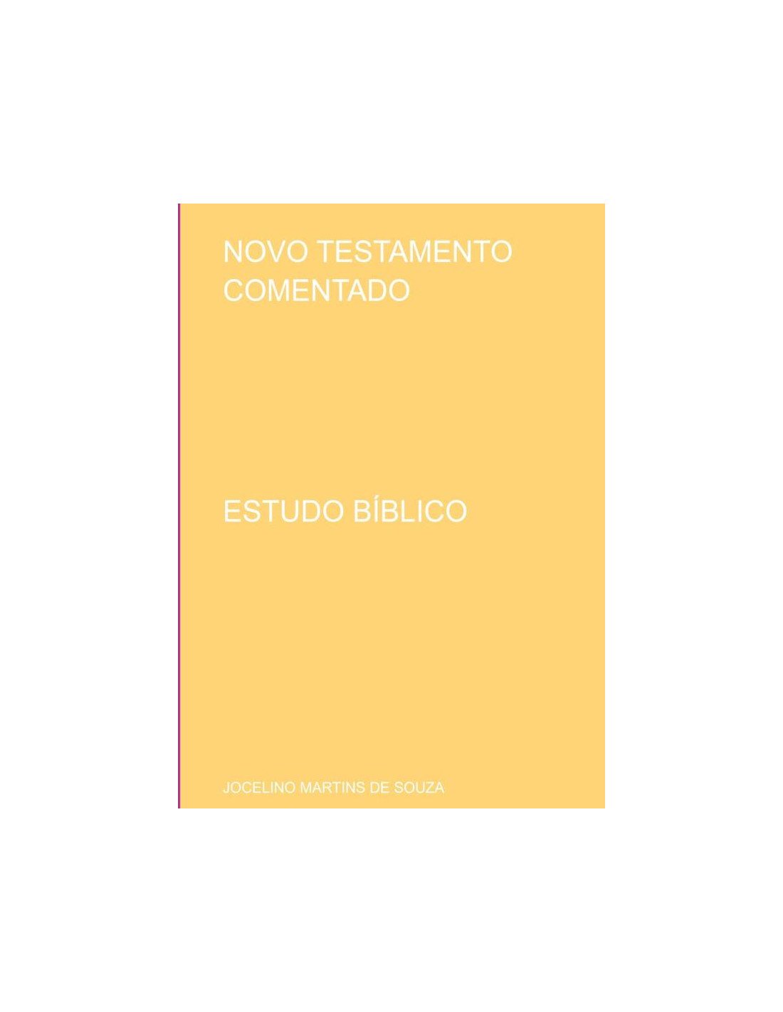 O Livro Novo Testamento Comentado é um estudo bíblico, baseado em 20 (vinte) anos de dedicação ao evangelho de Cristo, após um profundo e dedicado estudo ao Novo Testamento da Bíblia Sagrada. É a materialização do que as escrituras sagradas realmente quer nos dizer e direcionar nossos olhares para as palavras de Jesus e de seus apóstolos. Este estudo bíblico é uma preciosidade em artigo de opinião e tem como objetivo principal, ajudar as pessoas a conhecer Jesus e se você já conhece Jesus, que seja um complemento de seus conhecimentos das escrituras Sagradas. O autor, Jocelino Martins de Souza, ao escrever os artigos de opinião, procurou ser fiel, justo e verdadeiro, sem omissão de informações verdadeira,falar a verdade e nada mais que a verdade. Esse estudo teve uma atenção especial para as pessoas que mais precisa de Jesus Cristo neste mundo e não foi escrito para julgar as pessoas, e sim, para orientar e instruir sobre o Novo Testamento da Bíblia Sagrada. É sabido que o mundo explora muito pouco o Novo Testamento da Bíblia Sagrada, esse estudo bíblico foi dedicado 100% ao Novo Testamento.