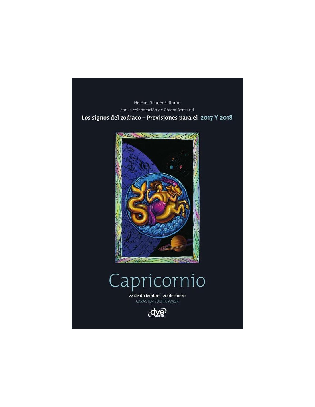 ¿Quiere saber qué le deparan el 2017 y el 2018? Este libro contiene las previsiones llevadas a cabo por Helene Kinauer Saltarini y Chiara Bertrand, a través de las cuales podrá descubrir las grandes líneas de su destino en todos los terrenos (vida sentimental, profesión, dinero, salud…). Además, se incluye un capítulo en el que podrá conocer elnombre de personajes famosos con su mismo signo del zodiaco.Esta obra, indispensable para todos los aficionados a la astrología, le explicará las características generales de Capricornio, la influencia de los planetas en su personalidad, el papel de las casas y del ascendente. Encontrará, asimismo, valiosas indicaciones sobre el modo de construir una ficha astrológica personal, las profesiones que más leconvienen y sus relaciones con los demás signos.
